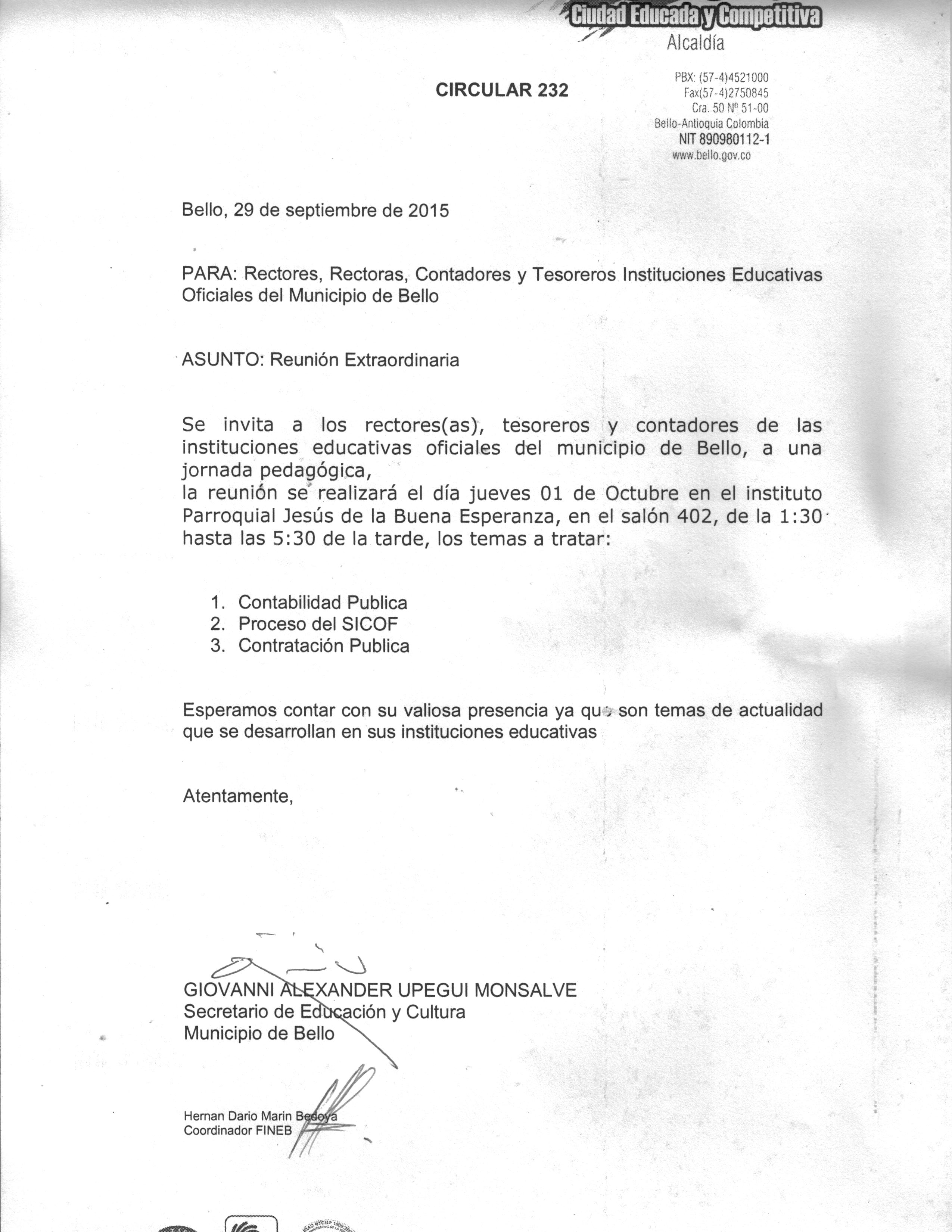Rectores, Rectoras, Contadores y Tesoreros de Instituciones educativas Oficiales del Municipio de Bello